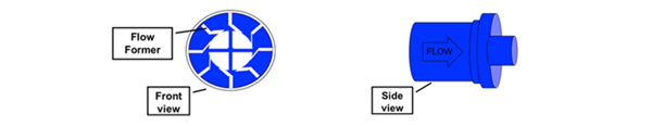 Flow formers at the inlet of the cylinder generate a controlled and constant swirl that causes the rotor to float in the flow stream of the metered fluid. This free rotation is almost without friction and proportionate to the fluid throughput.